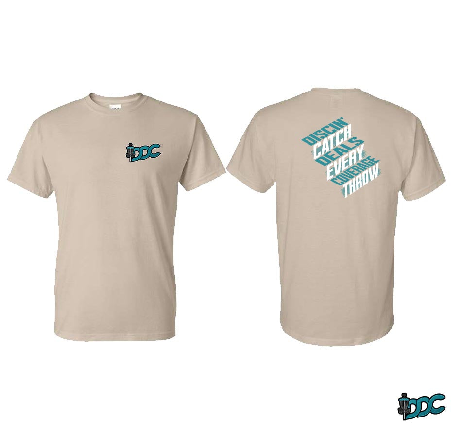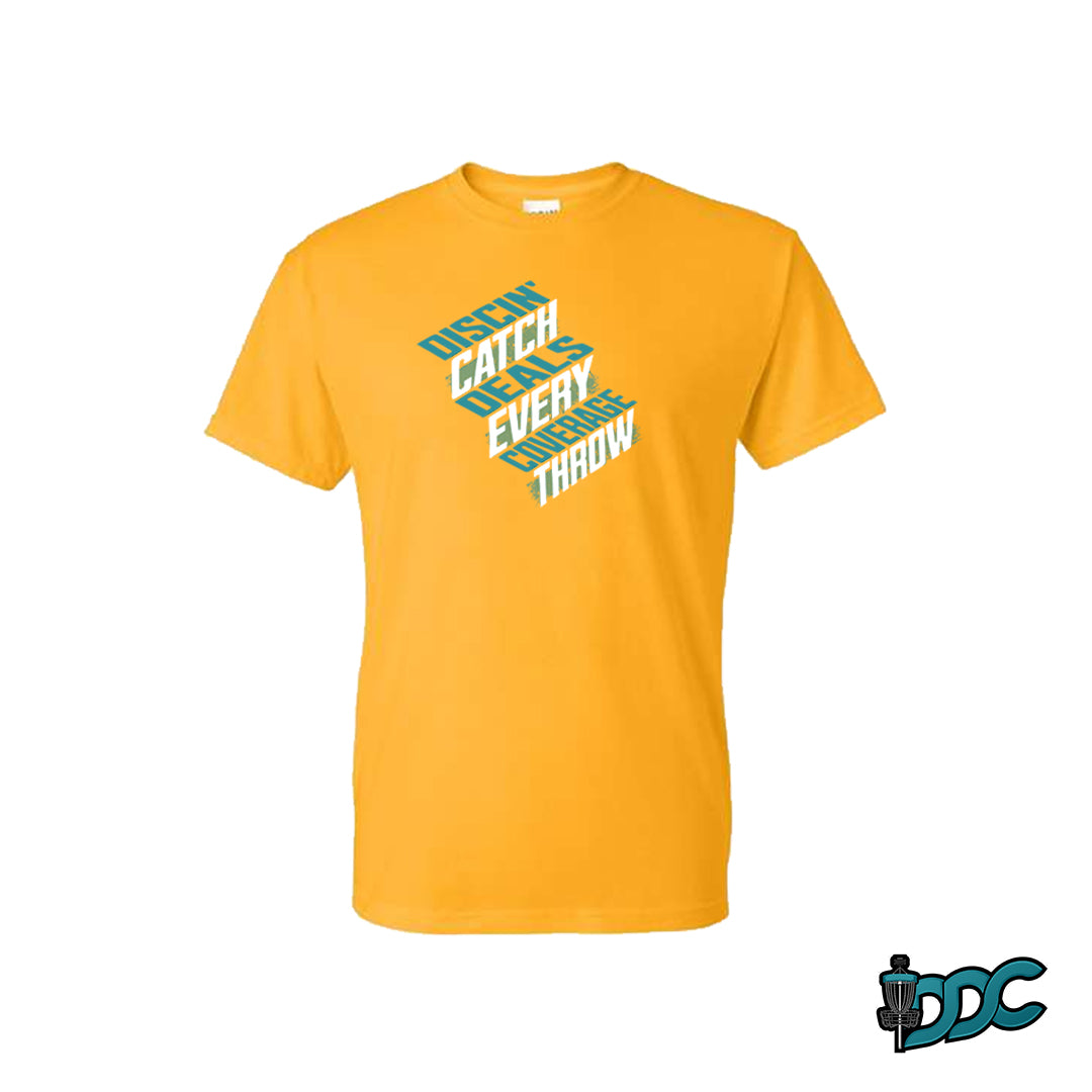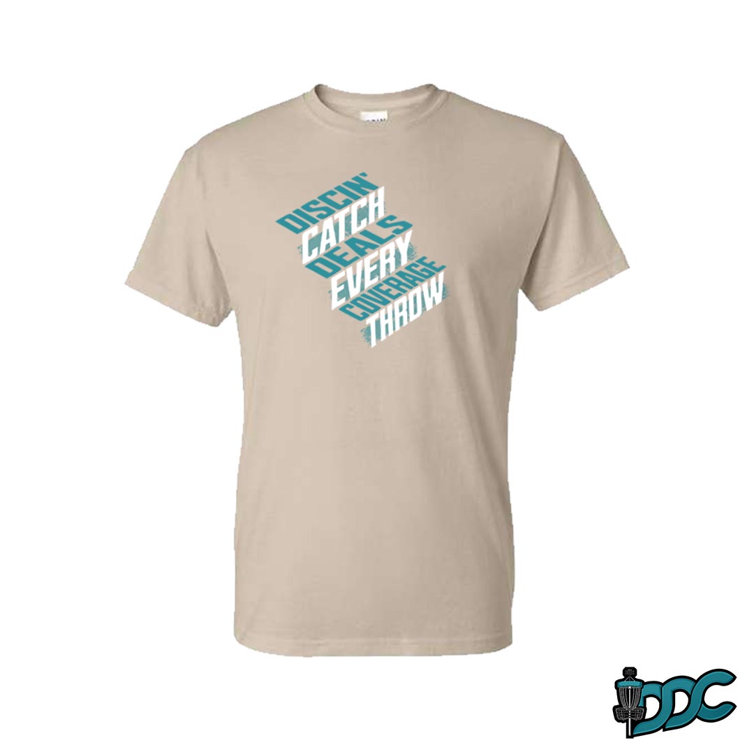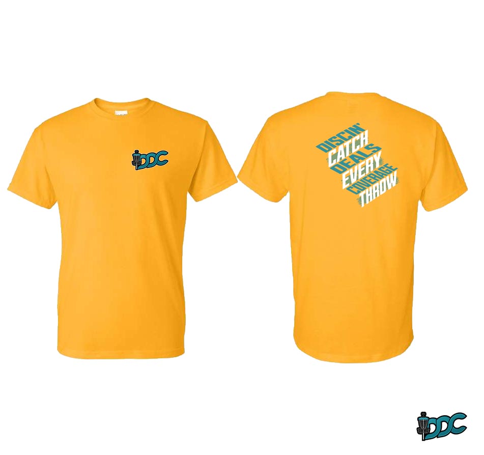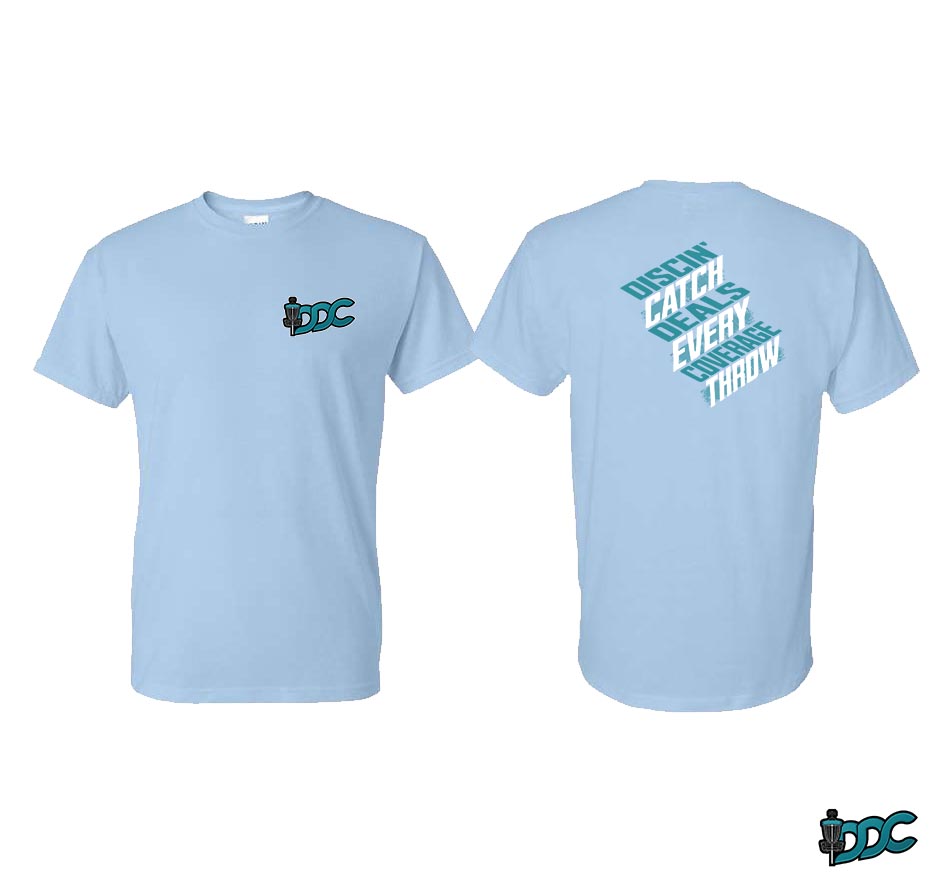 Enjoy the Discin Deals Coverage x Catch Every Throw phrase front and center, and the DDC logo on the Right Sleeve.