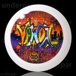 This project was the first project I did with Michael Barnard in around 2021. This is his interpretation of a vandalized wall, printed using the Dynamic Discs Dyemax Print Method.