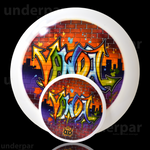 This project was the first project I did with Michael Barnard in around 2021. This is his interpretation of a vandalized wall, printed using the Dynamic Discs Dyemax Print Method.